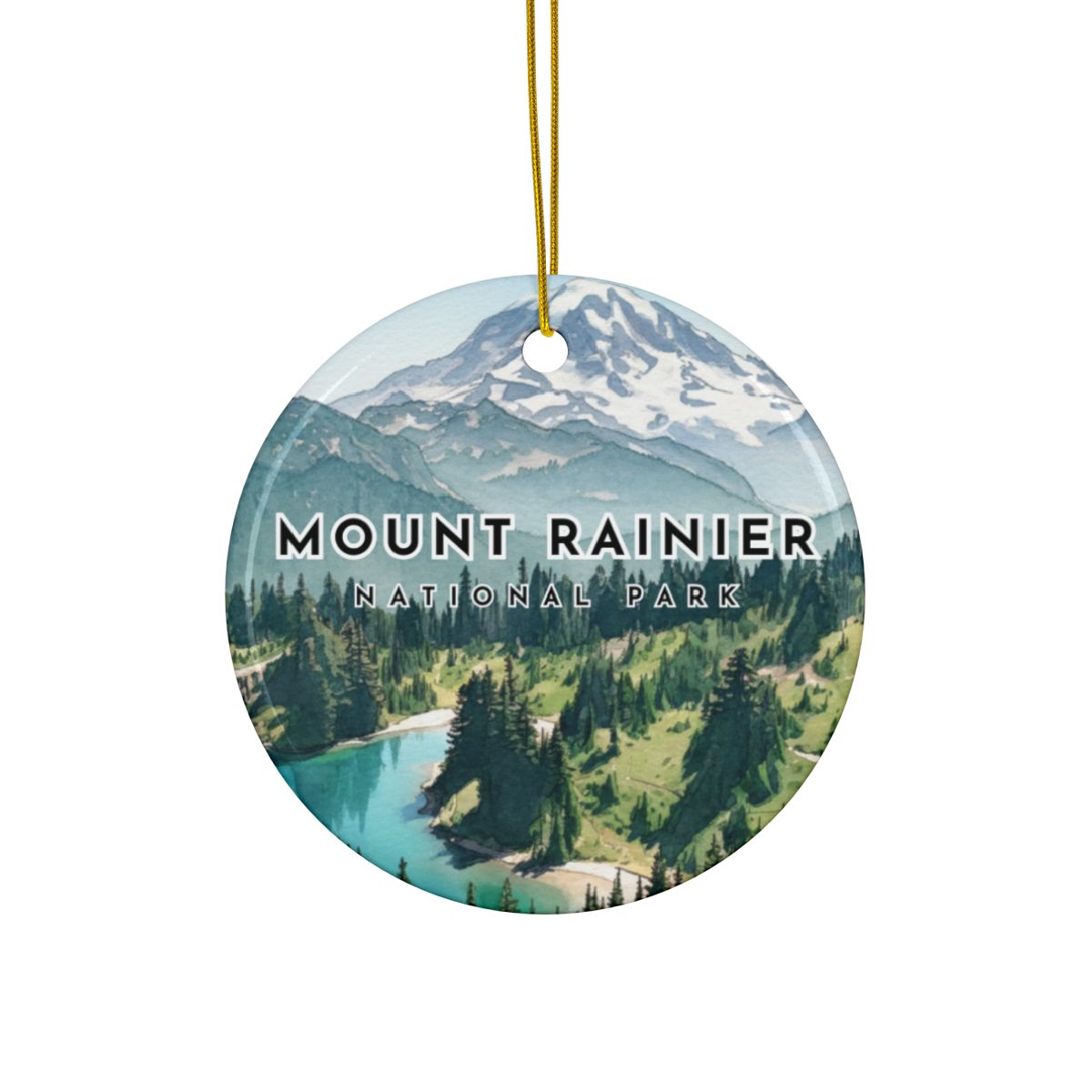 Celebrate your adventure to Mount Rainier National Park! Make this a perfect gift and add YOUR PERSONALIZATION to this elegant ceramic ornament with the design printed on both sides.